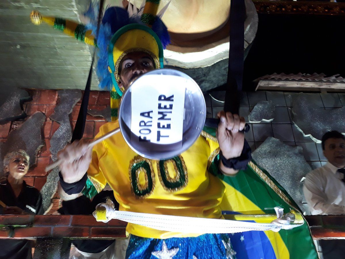 Na Sapucaí, arrancou da arquibancada os gritos de “Fora Temer”, que se repetem em blocos de rua pelo país.
