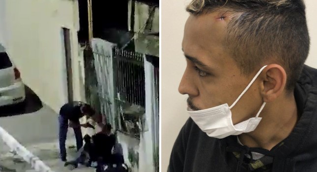 O rapaz é o motoboy André Andrade Mezzette, 29, que aparece nas imagens ao lado da mochila que usou, segundo a família, para fazer uma entrega de pizza na Rua Capinzal. “Ele tinha feito a entrega e parou numa outra rua para fumar um cigarro de maconha e nisso o policial passou de moto, perguntando ‘o que você tá fazendo aqui?’ e ele disse que estava trabalhando e o policial partiu para cima dele”, conta a irmã de André, a estudante Vitoria Andrade Mezzette, 21. “O policial deu uma coronhada na cabeça dele, ele tomou dois pontos”, denuncia.