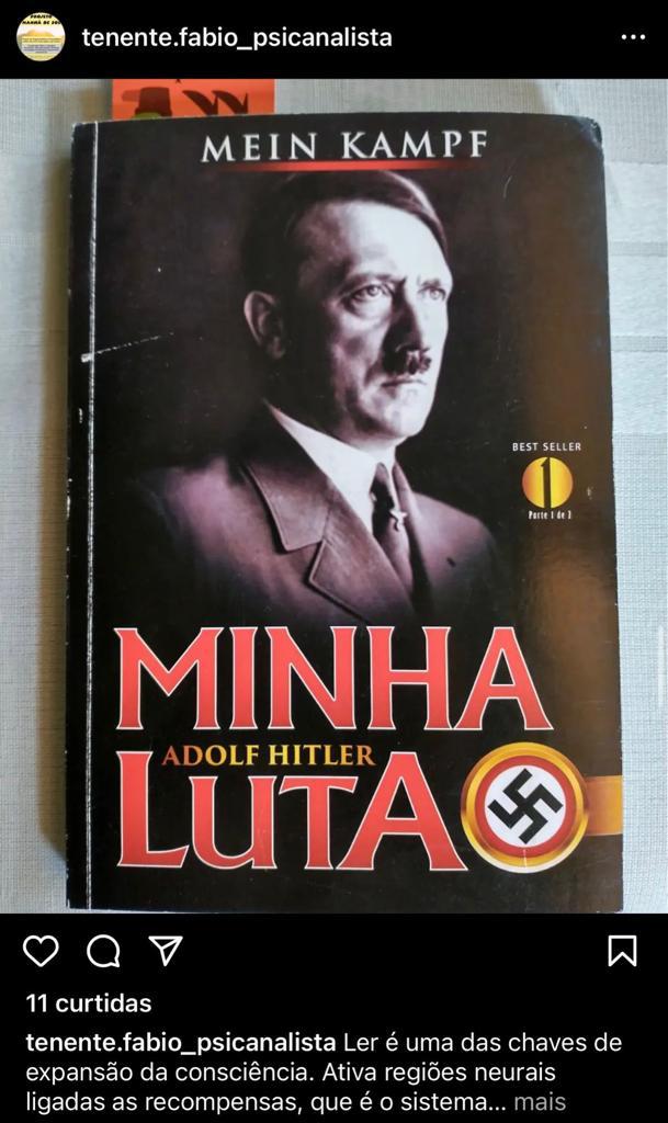 Horas depois do atentado, surgiram prints de um post com uma foto do livro “Minha Luta”, de Hitler e a legenda: