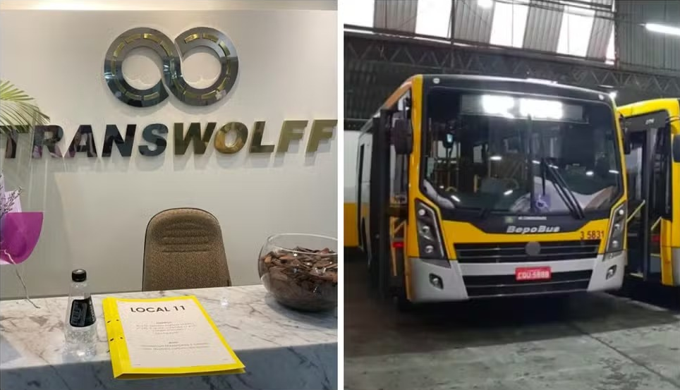 Logo da empresa e ônibus da Transwolff. Foto: Reprodução