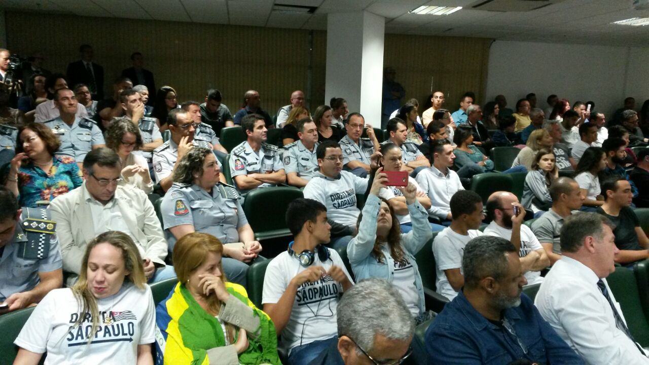 Entretanto, a platéia do auditório da Assembléia Legislativa ficou forrada de policiais. O que a PM foi fazer lá?