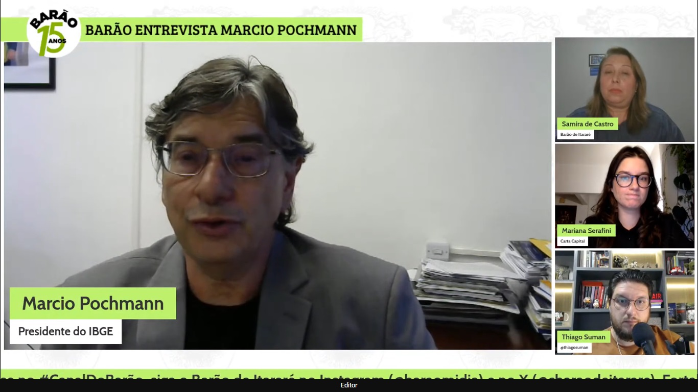 O presidente do IBGE, Marcio Pochmann, durante entrevista ao Centro de Estudos da Mídia Alternativa Barão de Itararé. Foto: Reprodução.