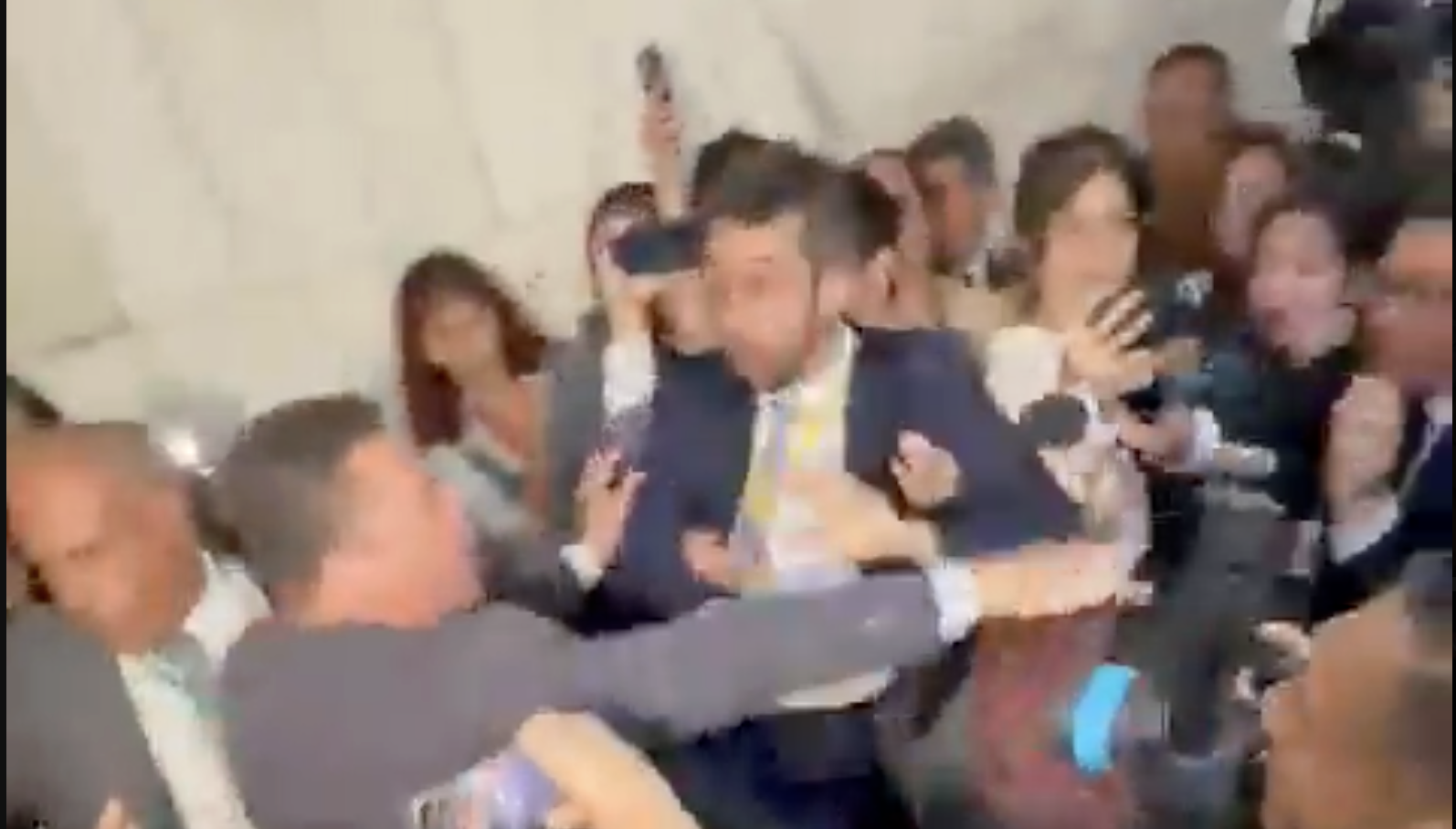 Guilherme Balza, da GloboNews, foi empurrado e a Carol Nogueira, do UOL, levou uma cotovelada dos jagunços de Motta.