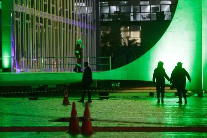 “A primeira hipótese é a de que um homem jogou um artefato explosivo contra o Supremo, exatamente perto da estátua, embaixo da marquise. Ele joga e depois deita sob a marquise, o artefato explode, e ele é atingido na cabeça. A polícia ainda está fazendo a perícia no local, não dá… pic.twitter.com/ZlhdHDOZrC