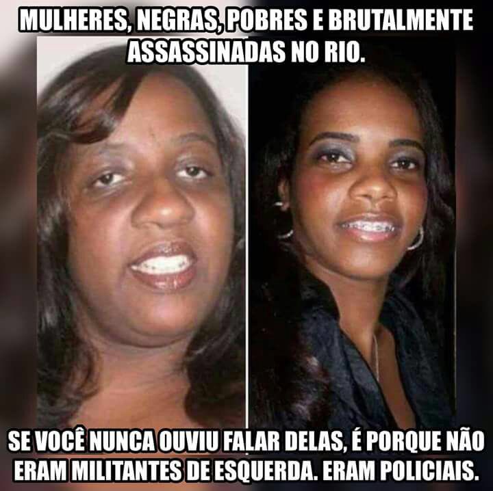 A legenda fala o seguinte: “Mulheres, negras, pobres e brutalmente assassinadas no Rio. Se você nunca ouviu falar delas, é porque não eram militantes de esquerda. Eram policiais.”