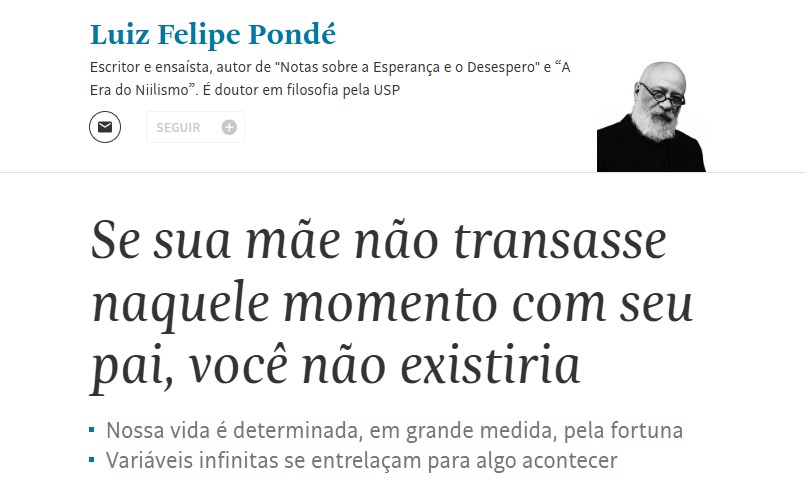 Essa é a chamada na capa da Folha para a coluna do filósofo Luiz Felipe Pondé:
