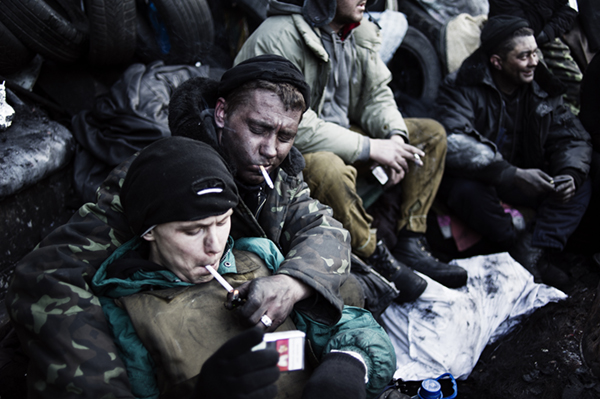 Embora não fale russo ou ucraniano e poucos aqui falem inglês, percebo uma maturidade política e cívica mais elevada. Não apenas dos manifestantes ativos nas batalhas e ocupações mas de todo cidadão que apoia a causa no país. Donos de restaurantes, programadores, vendedores e as mais diversas profissões estão presentes. Pessoas de todas as partes do país vieram pra Kiev para participar de alguma forma. Pode ser cozinhando, limpando, tirando gelo das ruas, cortando lenha e até trabalho de escritório. No Brasil, ainda vemos um movimento desorganizado de jovens e estudantes. A população como um todo ainda não foi tocada. Já o povo daqui tem ajudado muito com contribuições financeira, alimentícia e muita, mas muita roupa. Como ponto em comum, a mídia alternativa é atacada com clara intenção pela polícia. Há também as provocações verbais. Alguns manifestantes gritam para os policiais qual o motivo de apoiarem o presidente Yanukovich se o salário deles é tão baixo. Por que passam frio por um ditador que não se importa com o povo. Esse tipo de coisa.