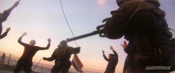 “Eu peço para as pessoas verem essas fotos e decidirem se ativistas pacíficos, com os braços levantados e sob a mira de pistolas podem de algum modo serem chamados de piratas”, disse Kumi Naidoo.