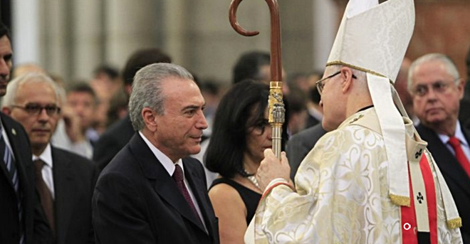 O bispo de Barra do Piraí-Volta Redonda, Francesco Biasin, religioso italiano que pertence ao movimento dos Focolares, referiu-se com dureza ao sucessor de Dilma Rousseff: “Vamos mostrar aos nossos governantes a nossa indignação em relação às reformas impostas à população sem diálogo com a sociedade civil organizada”, declarou, “e para manifestar o nosso desejo de construir um Brasil melhor para todos”.