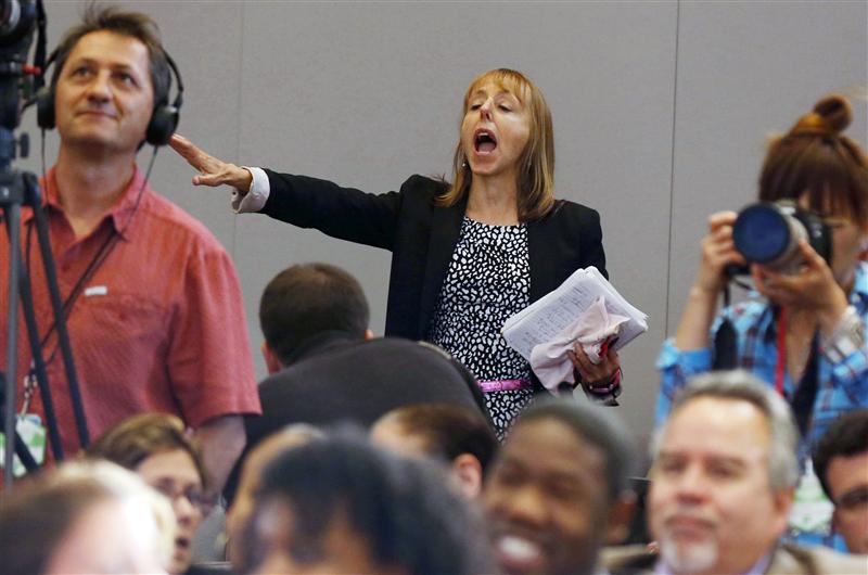 Medea Benjamin interrompe o discurso de Obama
