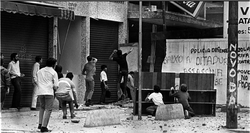 Mas a instituição em questão é o Mackenzie. A reitoria negou e assim o ato foi obrigado a transcorrer na rua (a emblemática Maria Antonia), debaixo de chuva.