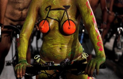 Para despertar a atenção para as bicicletas, ativistas em várias partes tiraram as roupas para marchar na Pedalada Pelada, ou Naked Bike Ride.