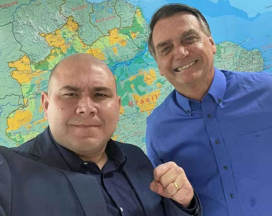 O prefeito de Cuiabá (MT), Abílio Brunini (PL), e o ex-presidente Jair Bolsonaro. Foto: Reprodução