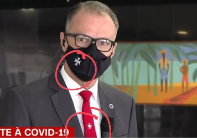O símbolo estampado na máscara usada pelo presidente da Anvisa, Antônio Barra Torres, na manhã desta quarta-feira (10), durante uma entrevista coletiva, chamou a atenção.