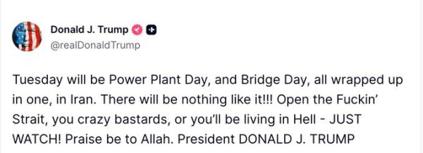 A declaração de Ghalibaf surge após Trump novamente exigir a reabertura do Estreito de Ormuz, importante passagem naval que foi fechada pelo regime iraniano em resposta a bombardeios realizados pelos EUA e Israel. Trump, em uma série de mensagens, usou um palavrão para reforçar suas exigências: “Abram o maldito Estreito, seus bastardos malucos, ou vocês vão viver no inferno – ESPEREM PARA VER. Louvado seja Alá”, disse Trump.