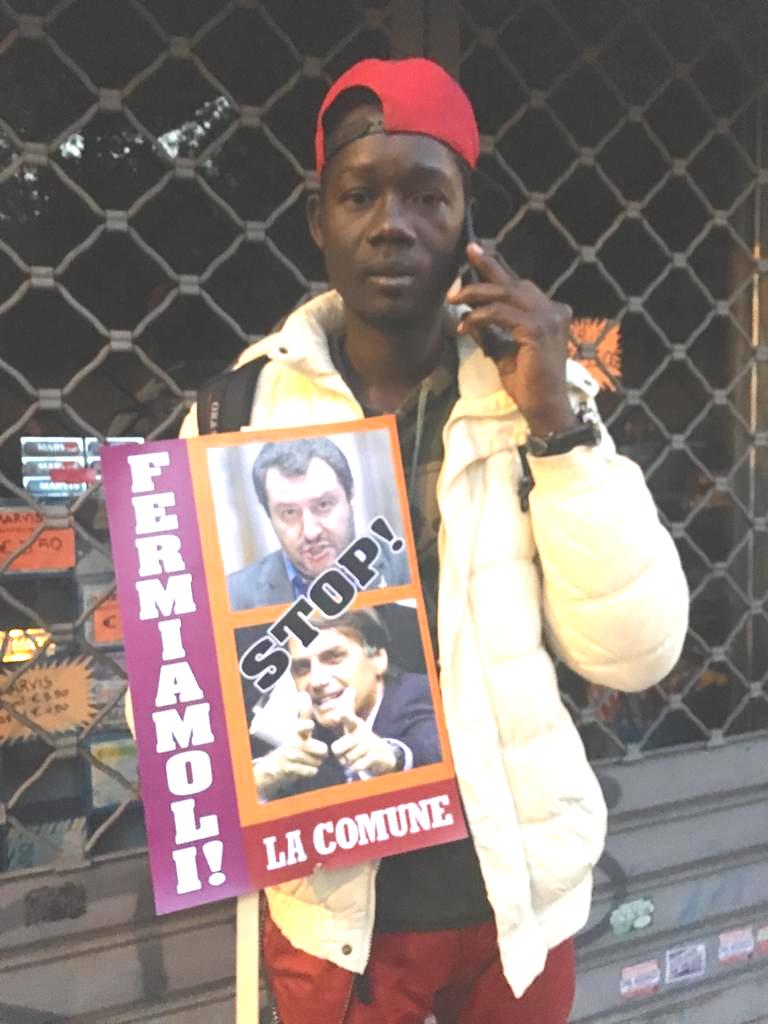Na capital italiana, havia cartazes e faixas com os dizeres “lute contra o fascismo”, “Vidas negras importam” e “Lar para todos, fronteiras abertas”.