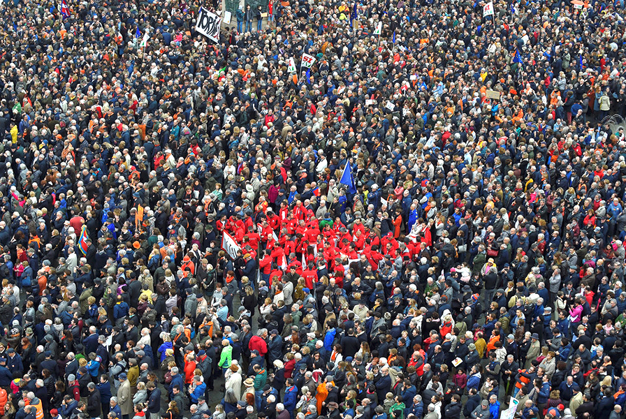 Uma grande faixa dizia “Bem-vindos a todos, fronteiras abertas”.