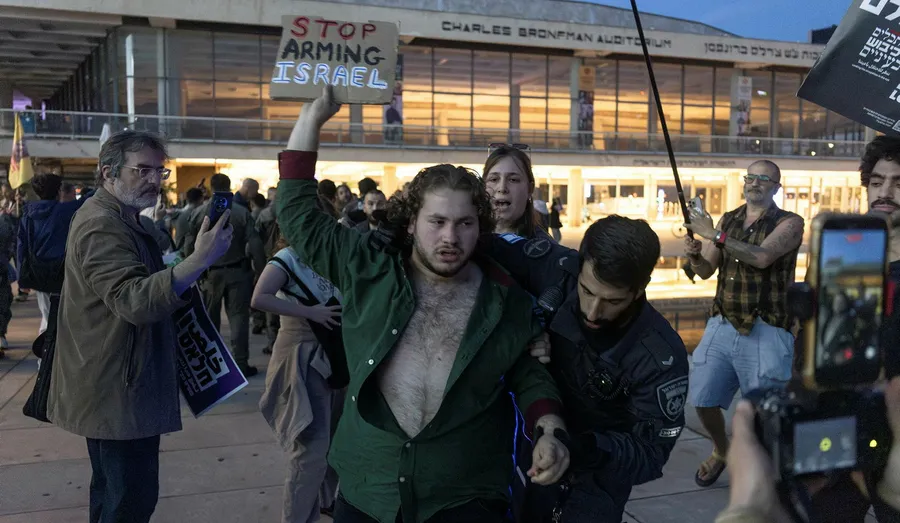 No sábado (28), um grande protesto contra a guerra no Irã, realizado na Praça Habima, em Tel Aviv, foi marcado por uma brutal repressão policial que resultou em treze prisões.