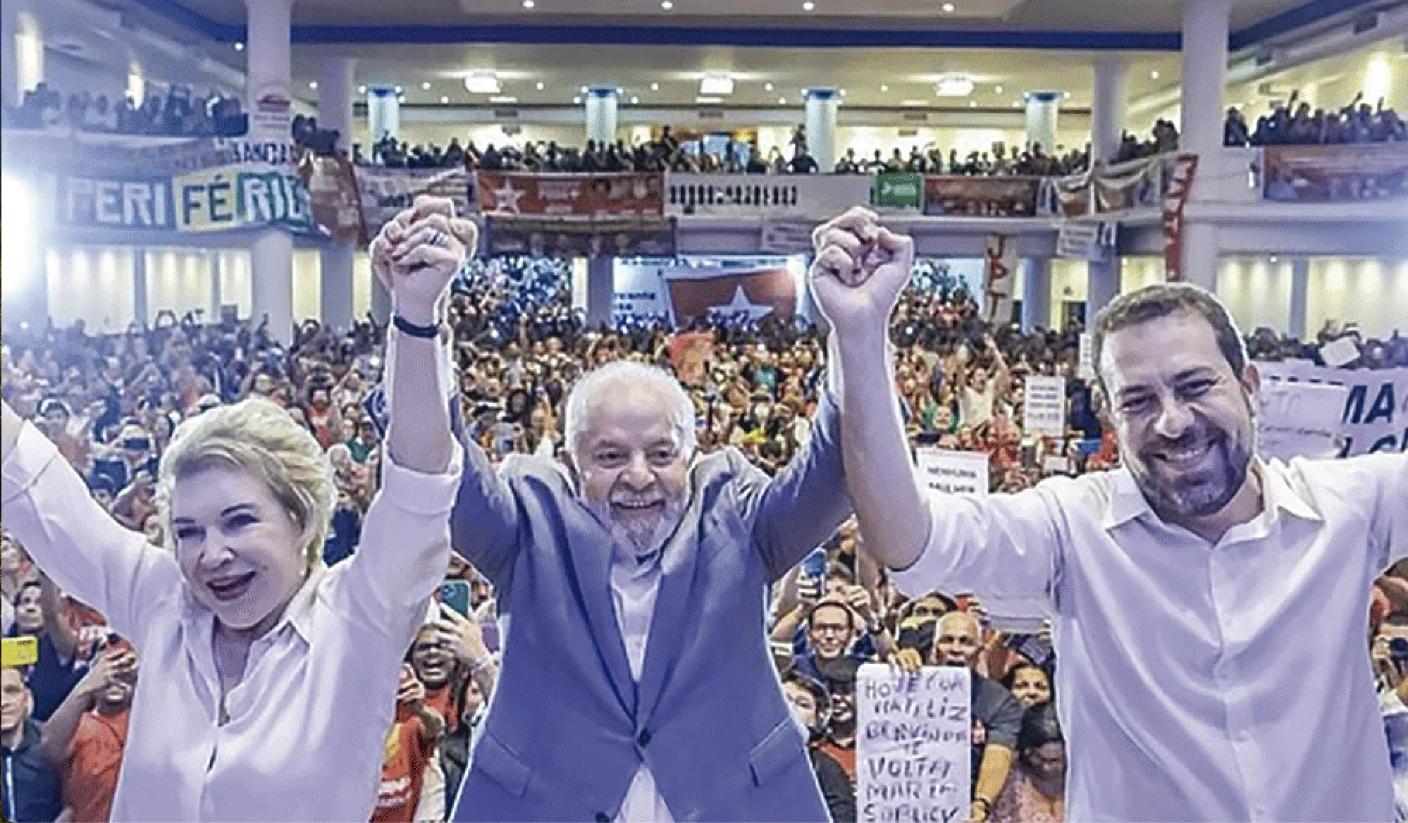 Lula entre Marta e Boulos no lançamento da campanha em SP