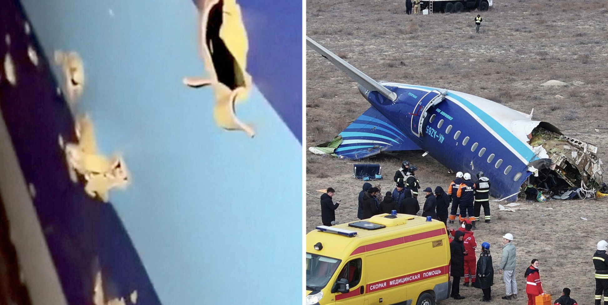 Os buracos na fuselagem do avião da Azerbaijan Airlines