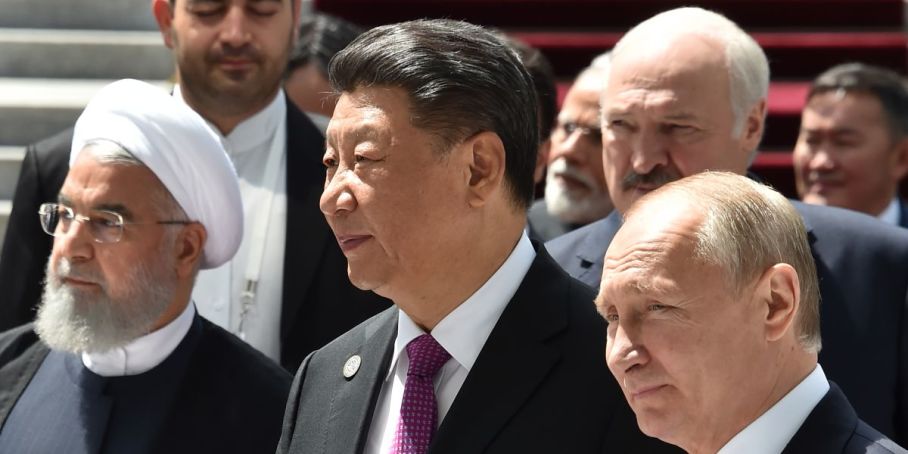 Ali Khamenei, do Irã, Xi Jinping, da China, e Putin, da Rússia