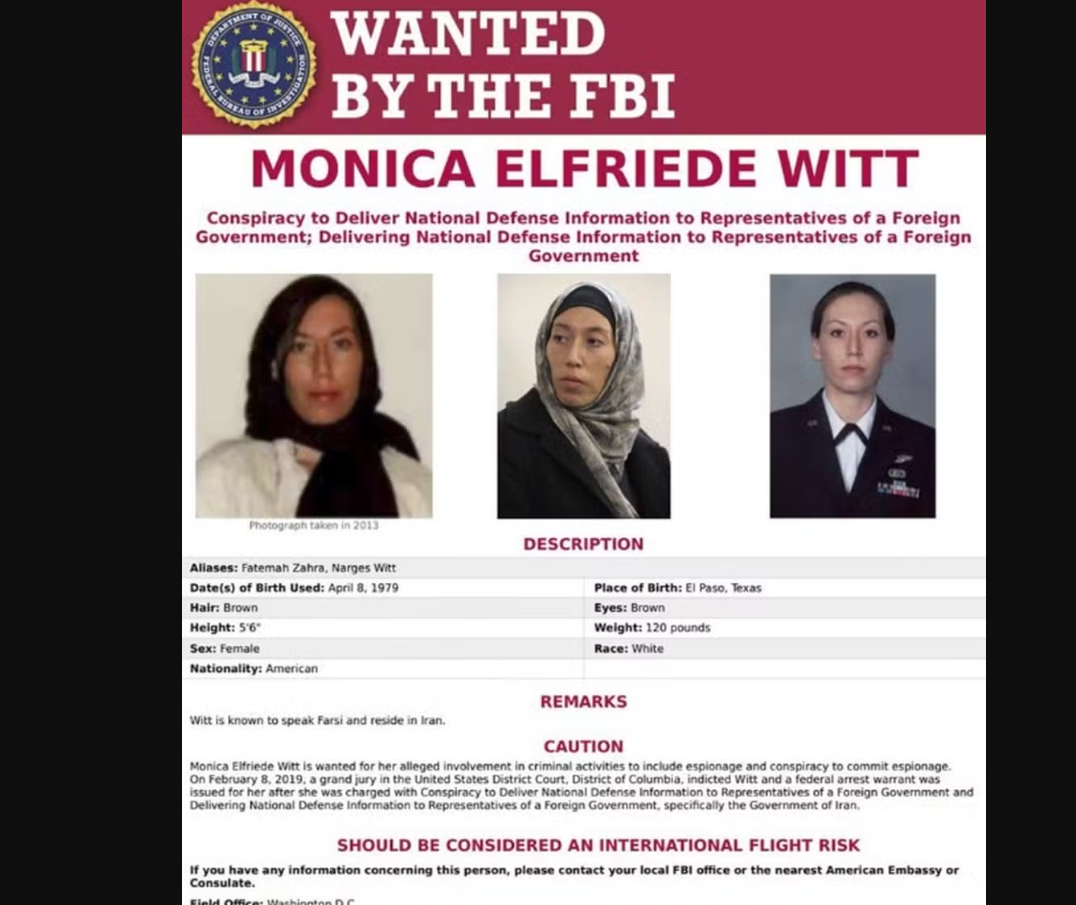 Witt, que foi especialista em contrainteligência por mais de uma década, causou um grande impacto no sistema de segurança dos Estados Unidos. Conhecida no Irã como Fatemah Zahra, foi treinada nas Forças Armadas dos EUA para atuar em missões de vigilância eletrônica, e seu conhecimento privilegiado pode ser um trunfo estratégico para o regime iraniano. Segundo fontes de inteligência, ela pode estar orientando as operações militares do Irã, aproveitando seu conhecimento detalhado das táticas de vigilância dos EUA.