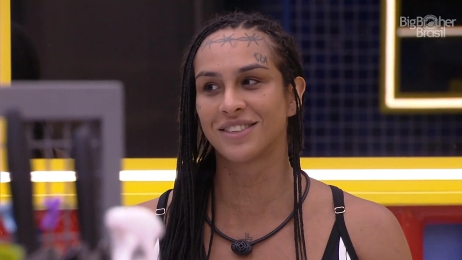 “Eu fiz essa tatuagem por causa da minha mãe, na verdade. No começo da minha transição, minha mãe ainda errava e me tratava no masculino”, contou ela no início desta edição do BBB. “Virei e falei: ‘olha mãe, vou tatuar ela aqui na minha testa para ver se a senhora não erra’. E acho que assim é uma indicação para todas as outras pessoas. Então, ficou na dúvida? Lê e vocês lembram que eu quero ser tratada nos pronomes femininos”.