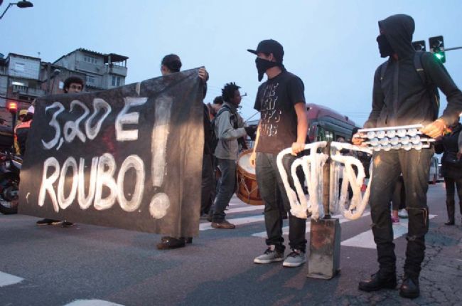 Tarifa zero. O transporte público de São Paulo é uma vergonha. Não dá para ficar assim. As pessoas dizem que 3,20 é barato, mas não é se você levar em consideração o lixo que são os ônibus.