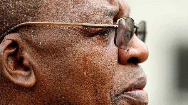 A lágrima clara sobre a pele escura.
