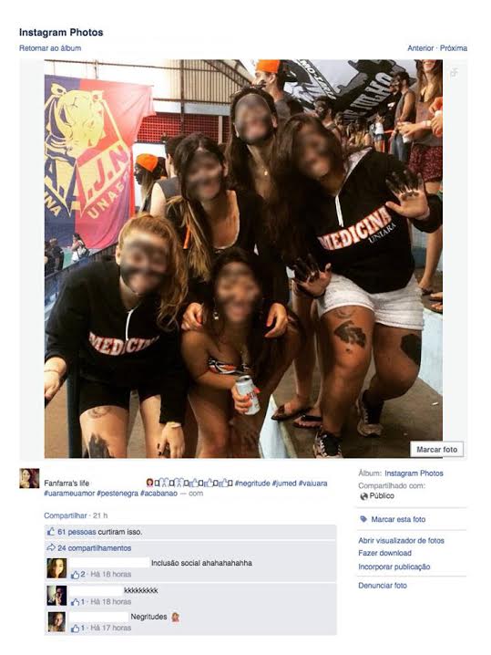 Não era uma brincadeira inofensiva. Os comentários que vieram logo a seguir da hashtag #pestenegra estavam recheados de preconceito. Eram cretinices do gênero “Inclusão social ahahahahahha” ou “Negritudes”.
