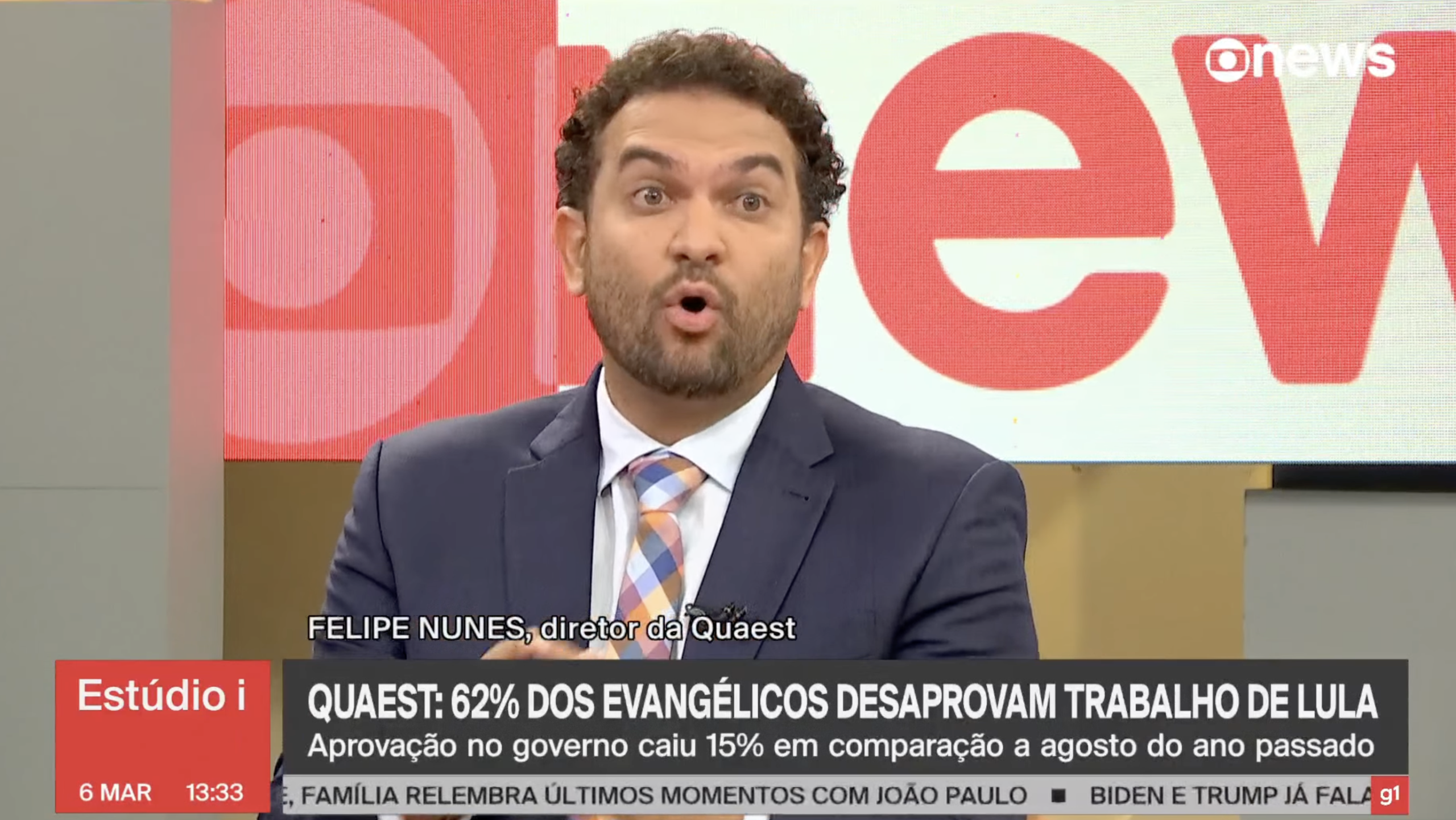 Dawisson Belém Lopes, professor de Política Internacional e Comparada da Universidade Federal de Minas Gerais (UFMG), incomodou Felipe Nunes, da Quaest, com um questionamento quase inocente do X.