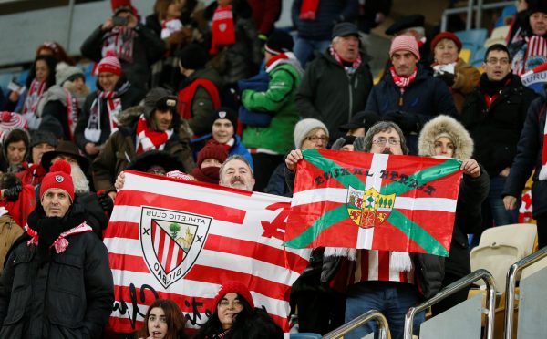 Torcedores do Athletic Bilbao com bandeira do País Basco. Foto: Gleb Garanich/REUTERS