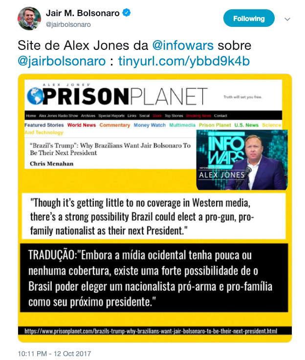 Bolsonaro e as matérias de Alex Jones sobre ele