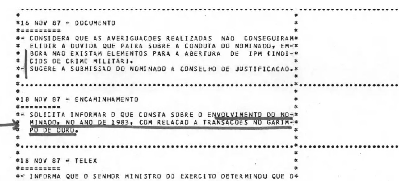 Um dossiê formulado pelo Estado-Maior das Forças Armadas concluído em 27 de julho de 1990, ao qual a reportagem teve acesso, detalha informações nada abonadoras reunidas pelo alto-comando do Exército desde o julgamento que arrancou Bolsonaro do anonimato, nos anos 80, até o início da sua vida parlamentar, na década seguinte.