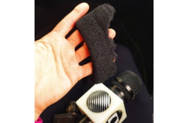 Em publicação no Instagram, a repórter mostrou uma foto do microfone com a espuma rasgada e exigiu “respeito”.