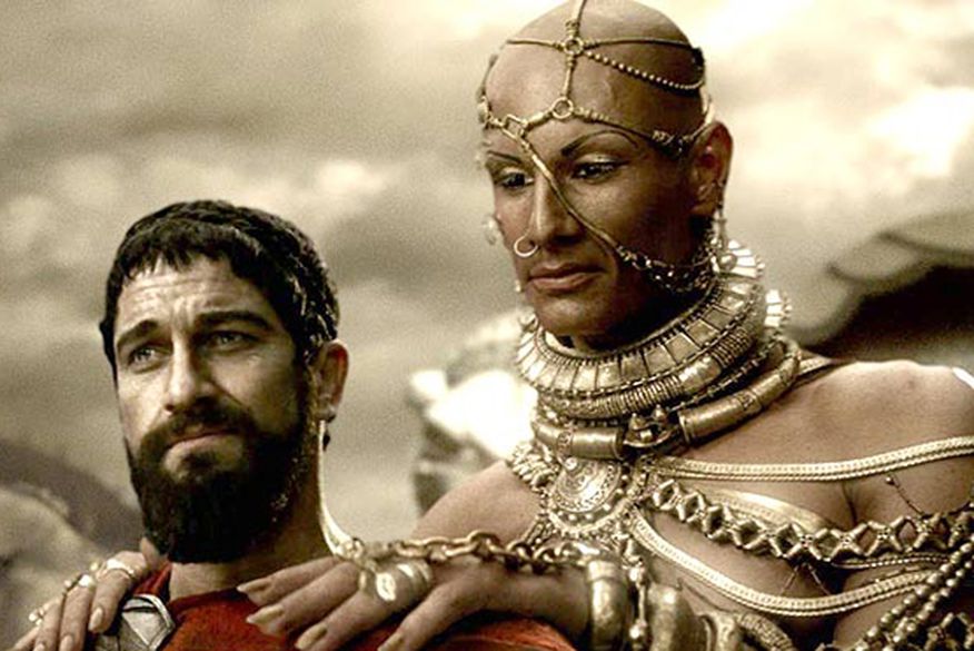 Leônidas (Gerard Butler) e Xerxes (Alexandre de Moraes) em “300”