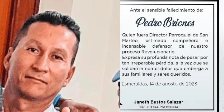 Pedro Briones era um proeminente líder do partido de Rafael Correa, o “Movimiento Revolución Ciudadana”. Além disso, desempenhou o cargo de Diretor Paroquial em San Mateo. O ato criminoso ocorreu no parque da igreja de San Mateo. De acordo com detalhes fornecidos pelas autoridades policiais, dois indivíduos em uma motocicleta se aproximaram da residência da vítima e efetuaram disparos.