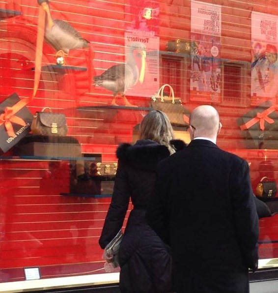 As imagens foram publicadas no Blog da Cidadania. Numa boa, Demóstenes passeia com a loira mais alta que ele olhando as lojas — lambendo vitrines, como dizem os franceses. Estão ali flanando, como dois turistas. Dois turistas ricos.