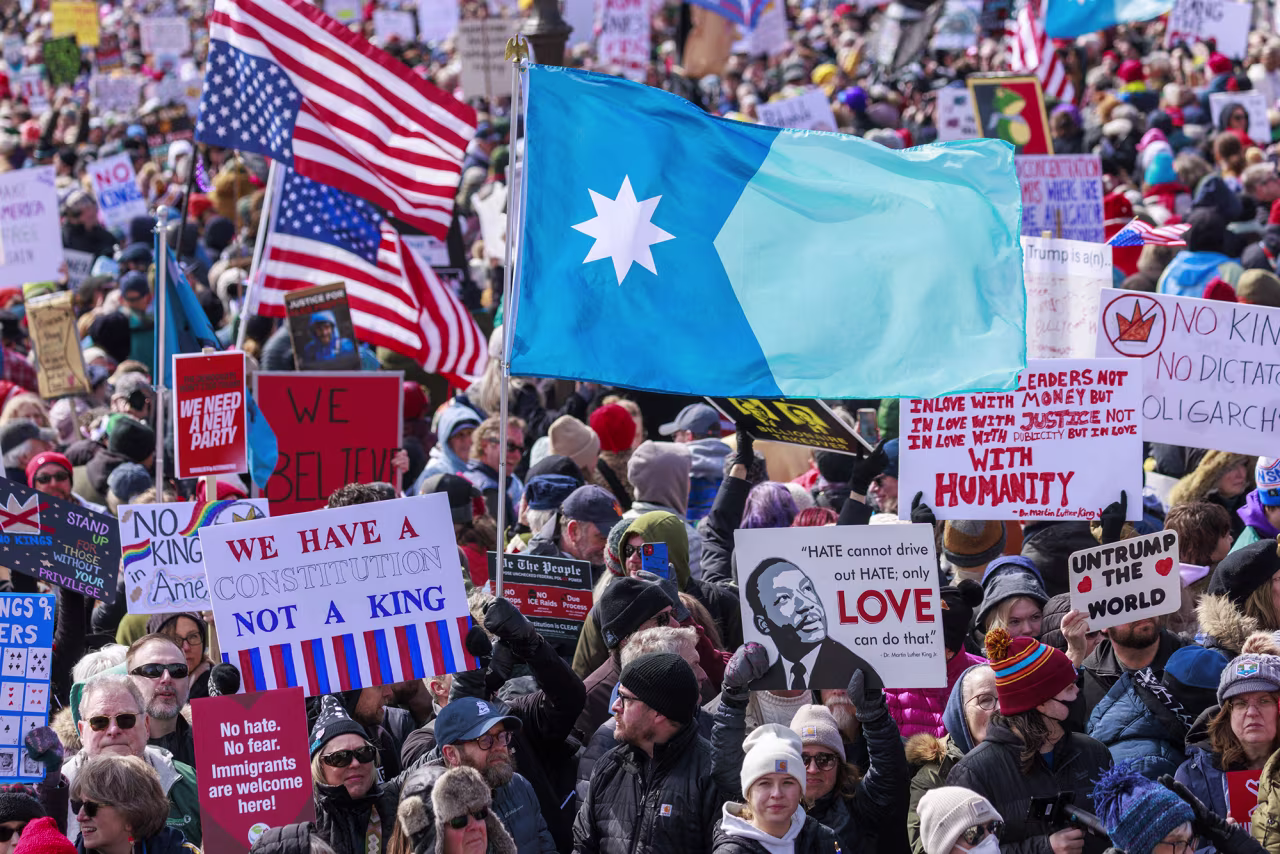 As imagens de Boston são impressionantes. No ano passado, milhões de pessoas participaram de atos, em sua maioria pacíficos, em dois dias “Sem Reis”. Desde então, a blitz nacional de fiscalização migratória de Trump com o ICE ocorreu em várias grandes cidades. Agora, os americanos enfrentam a alta vertiginosa dos preços da gasolina e uma economia enfraquecida devido à guerra.