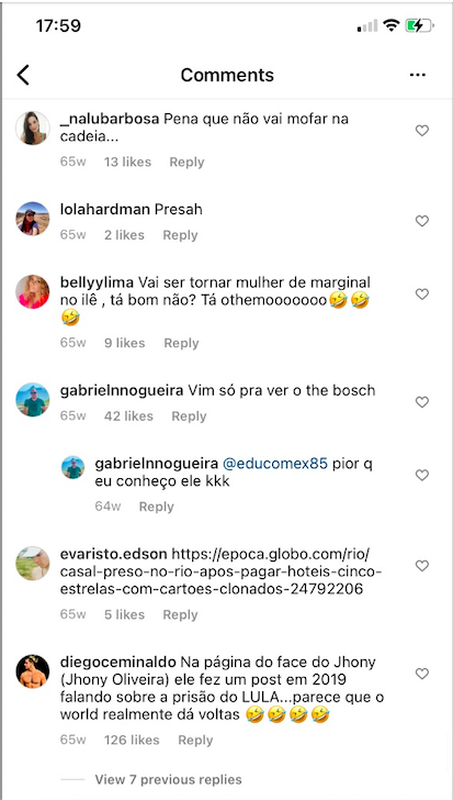 Fiz isso. Quando cheguei à delegacia, meu pai já estava lá. Um policial disse a ele: “Meu chefe, o inspetor, é da milícia. Ele me ameaça de morte todos os dias aqui dentro da Delegacia do Leblon. Se esse vídeo vazar, eu vou morrer. Então, mato o seu filho primeiro”. Meu pai me pediu para deletar o vídeo, eu apaguei, mas meus seguidores já haviam regravado, a meu pedido (inclusive com a cara do inspetor).