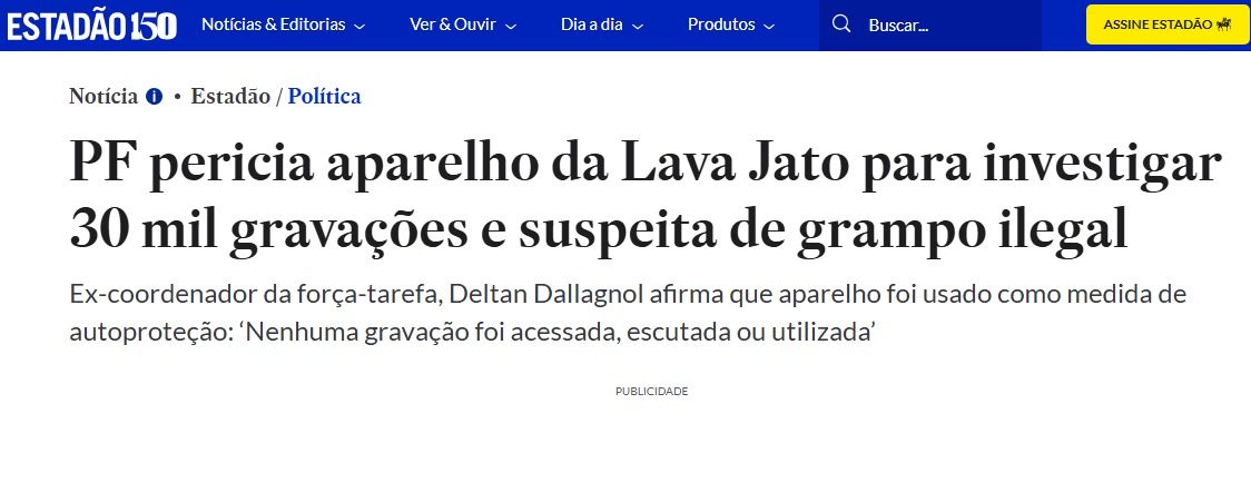 O Estadão voltou ao assunto agora, com uma reportagem de Aguirre Talento, que anuncia o seguinte já na manchete: “Polícia Federal pericia aparelho da Lava-Jato para investigar 30 mil gravações e suspeita de grampo ilegal”.