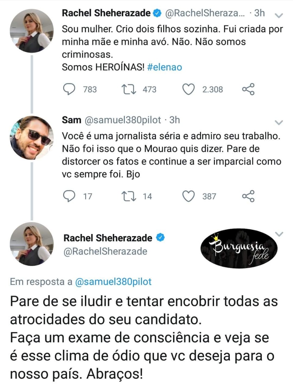 Sheherazade apoiou Bolsonaro no episódio Maria do Rosário. Chamou feministas de “feminazis”.