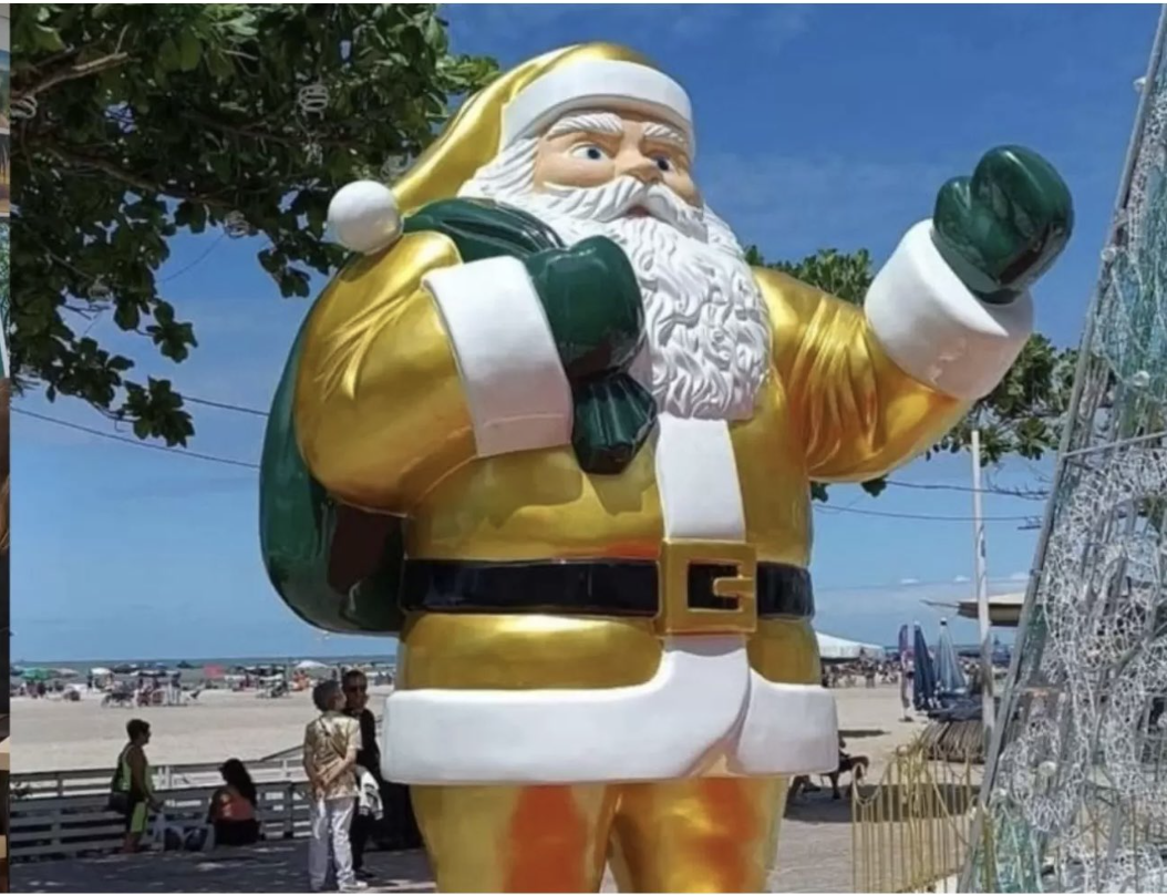 Já em Balneário Camboriú (SC), uma estátua gigante do Papai Noel situada na praça Almirante Tamandaré, na Avenida Atlântica, vem chamando atenção por um motivo igualmente idiota.