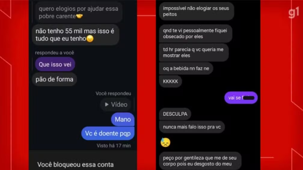 De acordo com as estudantes, as primeiras abordagens costumavam começar de forma aparentemente comum, principalmente pelo Instagram, mas o teor das conversas mudava rapidamente. Uma das vítimas, que pediu para não ser identificada, relatou ao g1 que as mensagens passaram a ficar cada vez mais agressivas e invasivas.
