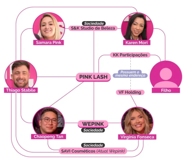 A rede de cosméticos Wepink tem origem ligada à Pink Lash, que teve como sócia Karen de Moura Tanaka Mori, investigada por envolvimento com lavagem de dinheiro e apontada em apurações policiais como ligada ao PCC (Primeiro Comando da Capital), segundo a Agência Pública. A empresária participou de negócios com Samara Cahanovich Martins e Thiago Stabile entre 2017 e 2021, período de expansão da franquia.