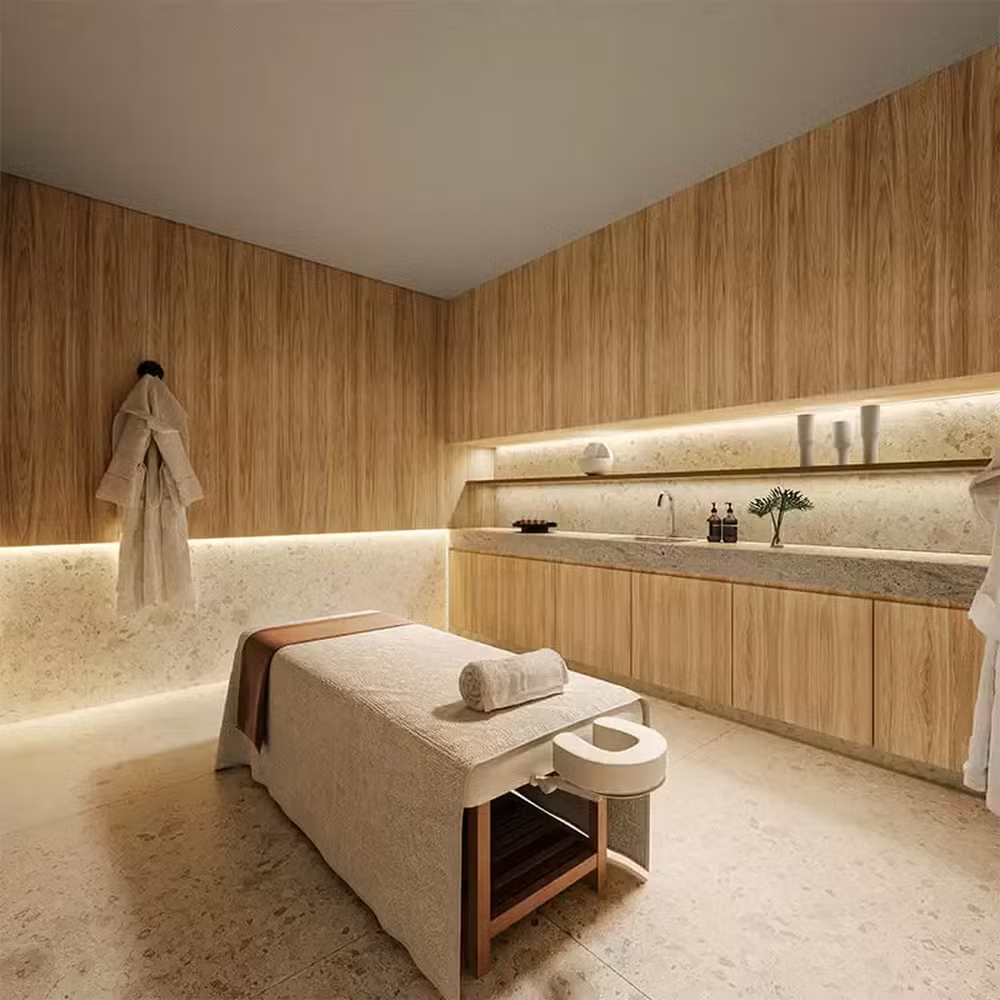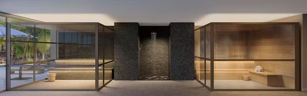 Nas suítes, os caixilhos de alumínio possuem vidros espessos e sistema de redução sonora, além de persianas automatizadas. As áreas íntimas têm portas de madeira com vedação inferior, e o empreendimento ainda conta com previsão de infraestrutura para automação residencial e aspiração central.