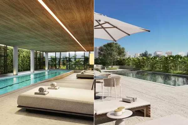 Entre os diferenciais do empreendimento estão piscina coberta, piscina infantil, salão de festas, brinquedoteca, espaço fitness, spa com área de massagem e lobby de alto padrão. Veja fotos do condomínio: