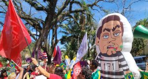 VÍDEO: Boneco inflável de Bolsonaro como presidiário marca ato após prisão