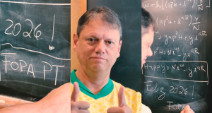 VÍDEO: De amarelinha, Tarcísio entoa “Fora PT” e constrange Flávio