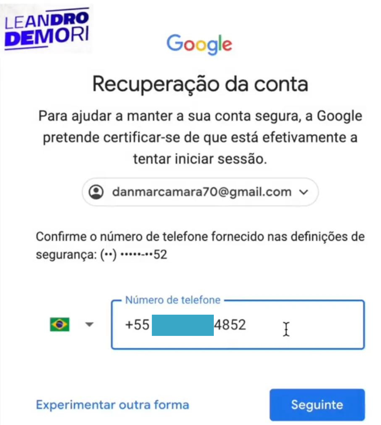 O print está na investigação da própria PF. O celular usado por Beatriz, telefone final 4852, está cadastrado para recuperar a senha do e-mail de Marcelo.